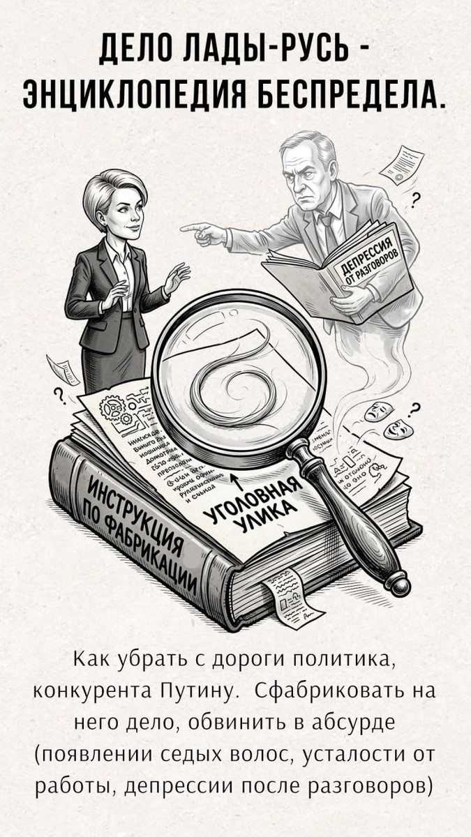 Разобраться во всем должно следствие. Ну, а если нет — то суд уж точно разберется. Так думают, наверное, все, кто не сталкивался с заказными решениями и фабрикацией уголовных дел «лицом к лицу». Как оказалось, в России сегодня возможно все. Можно получить срок за седые волосы коллеги. За то, что кто-то кому-то не вернул долг, а обвинили в этом вас. Или вообще — «за то, не знаю за что», как в случае со Светланой Ладой-Русь, известной правозащитницей и общественным деятелем. Она участвовала в выборах президента в 2012 году и добилась, чтобы требования для самовыдвиженцев стали реальными. Она подавала заявление в ФСБ на Путина и Сердюкова с вопросом — а не является ли их реформа армии государственной изменой? Она заявляла о захвате власти через выборы. О том, что конституционный строй в нашей стране фактически изменен с демократического на авторитарно-тоталитарный. Что Россия по сути стала колонией Запада после госпереворота 1993 года. И что настоящие иноагенты сидят в Кремле и Госдуме. Ведь у них и собственность за рубежом, и дети. А по словам депутата Федорова, около 80 тысяч российских чиновников проходили обучение по американским программам.(https://dzen.ru/a/Za-AVhxzlxFWAi-z)