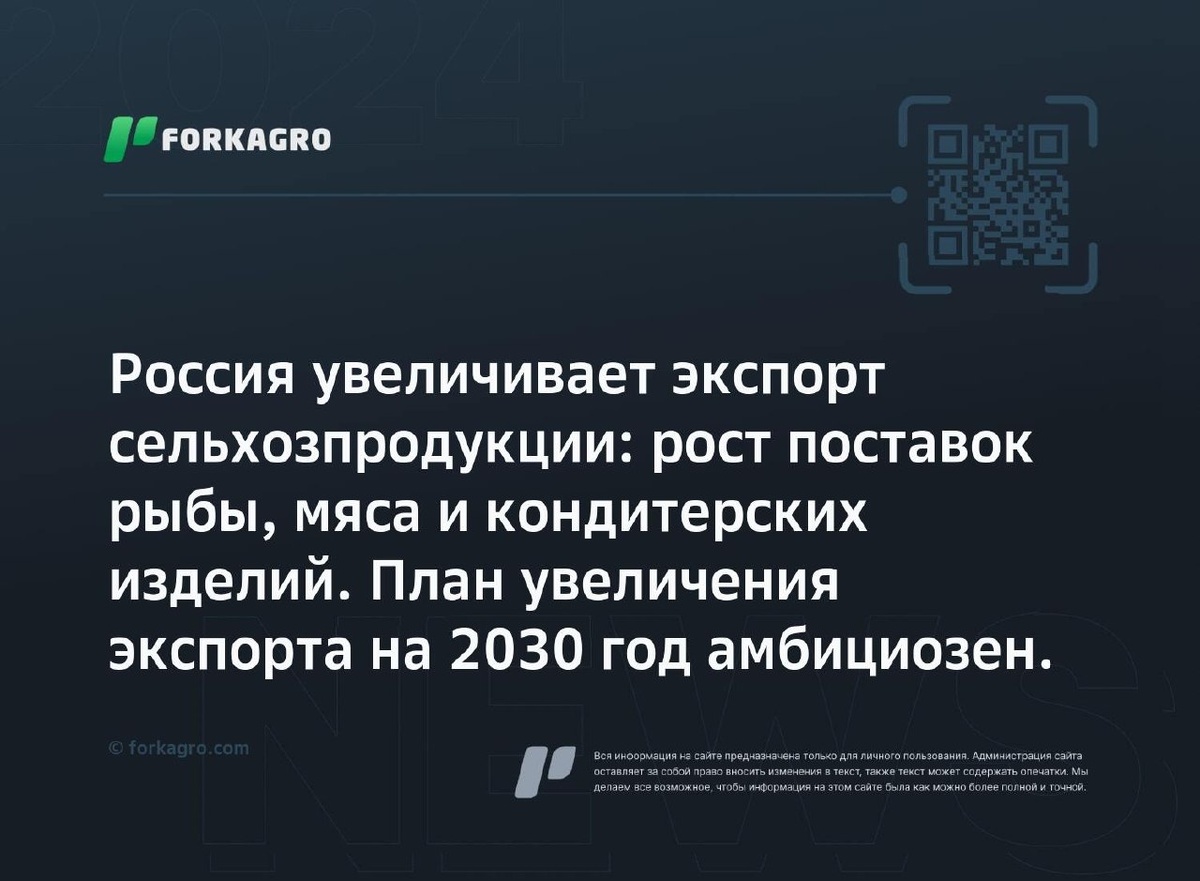План увеличения экспорта на 2030 год амбициозен. Россия укрепляет свои позиции на мировых рынках, увеличив экспорт товаров, включая рыбу, мясо, масло и кондитерские изделия. Экспорт с высокой добавленной стоимостью также возрос. Путин поставил задачу увеличить экспорт в полтора раза к 2030 году. Потребуются скоординированные действия государства и бизнеса. Минсельхозу поручено контролировать выполнение экспортных планов и разрабатывать новые механизмы поддержки экспорта. Перейти к источнику