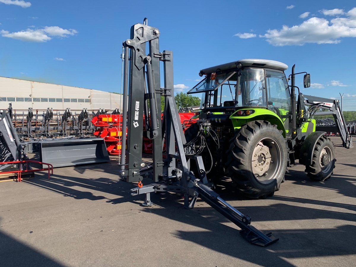 Он крепится на заднюю навеску трактора, упираясь мощными опорными «лапами» в грунт, что создает максимально устойчивую платформу для работы. Выдвижные опоры-аутригеры принимают на себя всю нагрузку, разгружая трактор. Это позволяет работать с максимальным грузом 3000 кг. безопасно, без малейшего риска опрокидывания.
