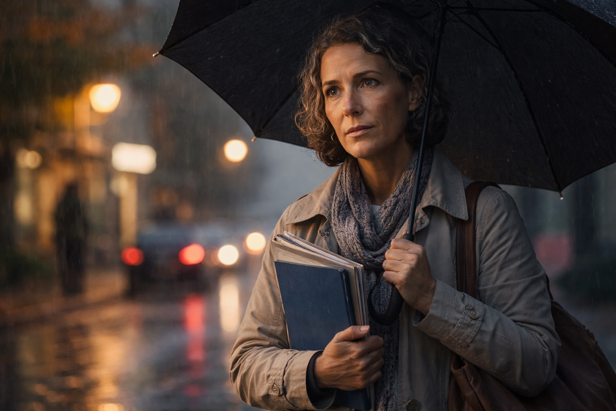 — О том, сколько женщин в нашем возрасте уходят домой вот так же, как я тогда. Молча. Под дождём. С чувством, будто они больше никому не нужны. И сколько из них уже не возвращаются.