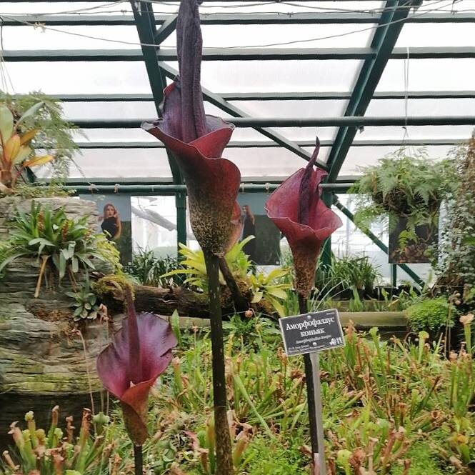 В «Аптекарском огороде» зацвел аморфофаллус. В народе - «язык дьявола». И да, он пахнет... Тухлым мясом😵💫 ✔️Ho это не баг, а фича: таким образом цветок привлекает мух для опыления. Цветет он всего неделю - но, честно, не уверены, что туда стоит спешить 😂