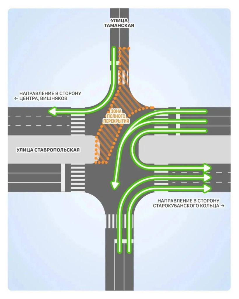 Проезд частично перекроют на оживленном перекрестке в Краснодаре
