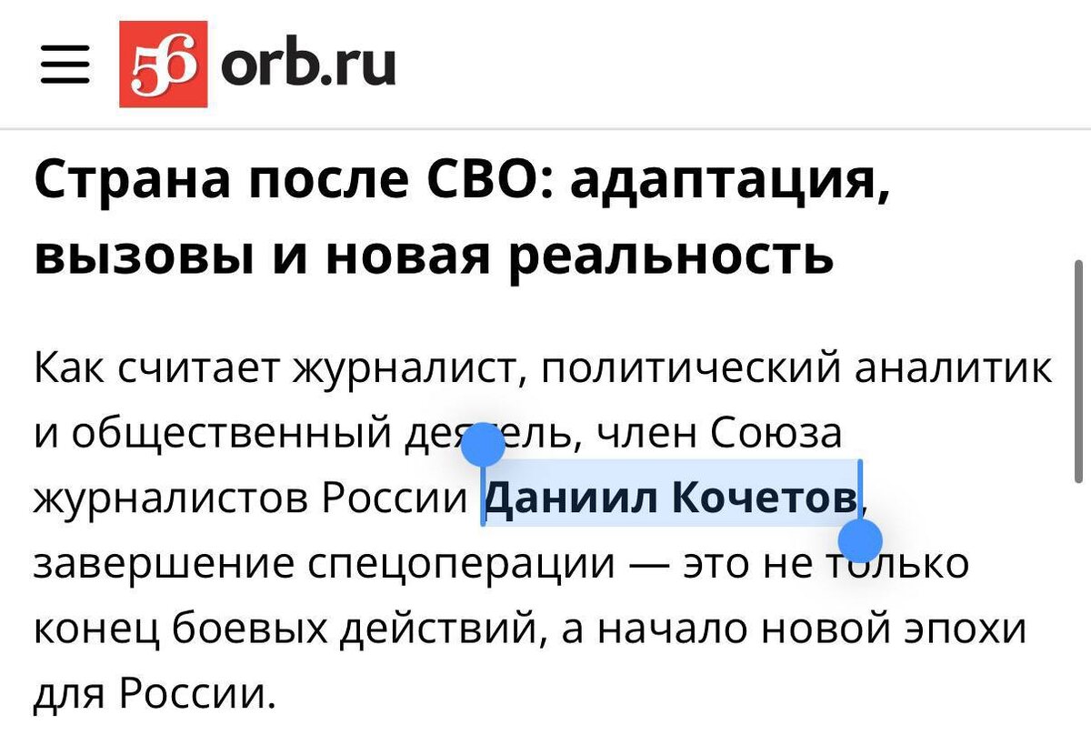? 🔥 Друзья, мой комментарий вышел в большом аналитическом материале на Оренбургский городовой о том, какой будет Россия после завершения Специальной военной операции. 📌 Статья разбирает возможные сценарии поствоенного периода: экономическое восстановление, новые приоритеты внутренней и внешней политики, изменения в обществе и начало действительно новой эпохи для страны. 💬 В своём комментарии я отметил: завершение СВО станет не просто окончанием военного этапа, а настоящим рубежом — началом новой эпохи для России. 📈 Страна выйдет из неё с совершенно другим уровнем суверенитета, укрепившейся промышленностью, перестроенной экономикой и обновлённой элитой. ❗️Главное сейчас — уже сегодня готовиться к этому переходу: выстраивать долгосрочную стратегию развития, инвестировать в людей, технологии и внутреннюю сплочённость, чтобы победа на фронте трансформировалась в настоящую победу в мирной жизни. 🔗 Полный материал с моим развёрнутым комментарием читайте по ссылке: https://56orb.ru