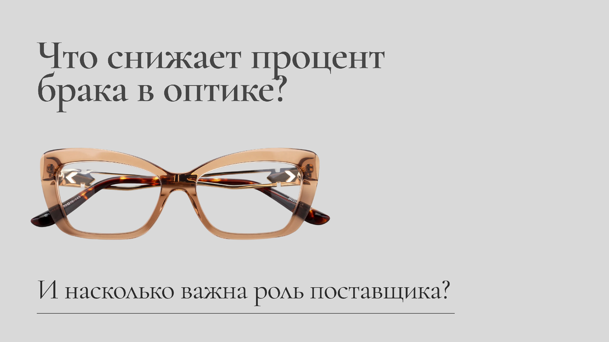 Брак в оптике — это не только испорченный товар. Это возвраты, недовольные клиенты, потеря доверия и прямые финансовые потери. Даже небольшой процент дефектов может существенно снизить прибыль салона, особенно если речь идет о регулярных закупках оправ и солнцезащитных очков. Главный вопрос: откуда берется брак и как его реально снизить? Многие оптики считают, что брак — это случайность. На практике это почти всегда результат системных ошибок: — неправильный выбор поставщика — отсутствие контроля качества — слабая проверка товара при приемке — неудачная матрица ассортимента Важно понимать: снизить процент брака можно только через систему — от производства до продажи. 1. Качество производства и материалов Основа любого товара — это материалы и технологии. Если при производстве используются дешевые сплавы, некачественный ацетат или отсутствует контроль на этапах сборки, риск брака возрастает в разы. Типичные проблемы: — хрупкие дужки — неравномерное покрытие — перекос оправы — слабые кре