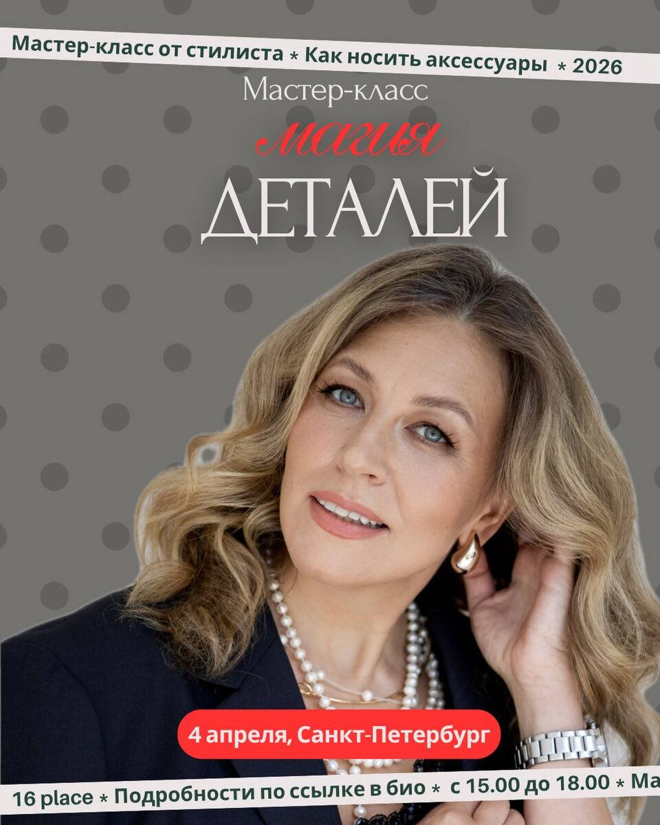 🎭 «Магия деталей» мастер-класс, который точно стоит вашего внимания. Почему? Потому что дьявол в деталях, и волшебство образа тоже. Если вы чувствуете, что вам не хватает именно этой самой «изюминки» в гардеробе, приходите. Будет камерно, вдохновляюще и очень полезно. 👉 Вся информация — в карусели → листайте Ссылка на оплату и еще подробности вот в этом посте Не пропустите! 🌟