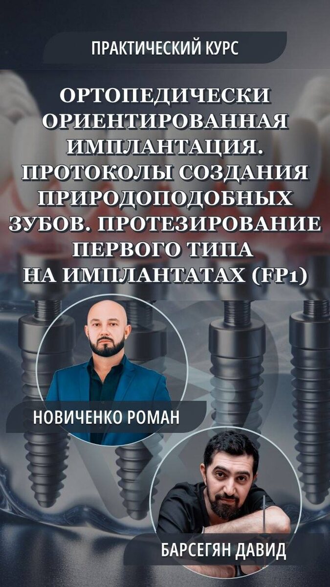 👀 Санкт-Петербург | 7–8 июня ✈️ Роман Новиченко и Барсегян Давид Сережевич 📞 ——————————————— - Планирование при атрофии: нёбные, транссинусальные, птеригоидальные позиции - Сохранение гребня: щит, шайба, пересадка лунок и ССТ - Временные конструкции: бампер, ПММА, миоцентрик Протезирование FP1-FP3 Практика на моделях черепа: имплантация, подбор мультиюнитов, регистрация ЦС ——————————————— Подробная программа курсов по ссылкам 📎 https://stom-e.com/implantaciya?utm_a=Tg С наилучшими пожеланиями и надеждой на сотрудничество, СТОМ-И 📸