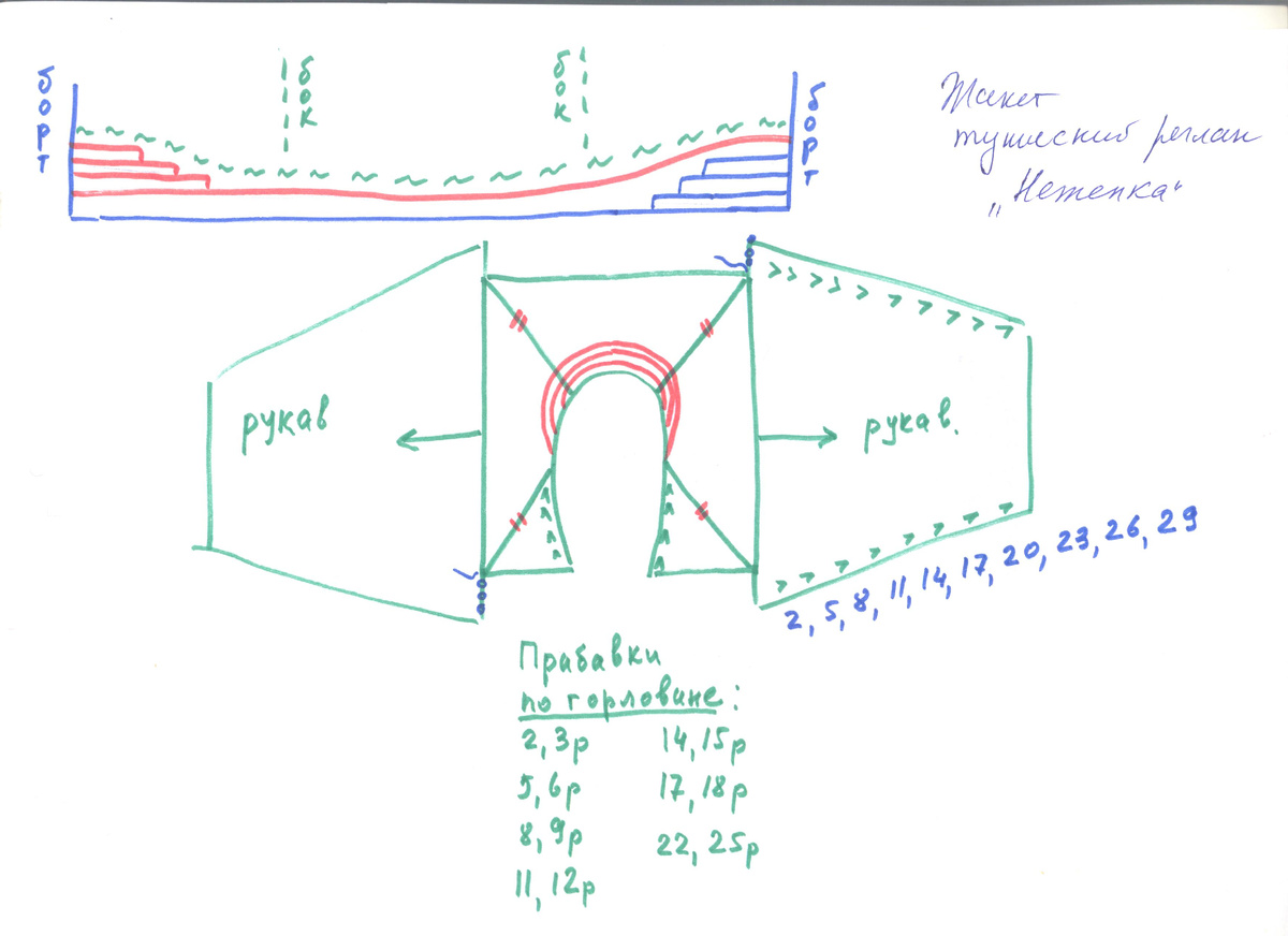 Вяжите жакет от горловины, одним полотном, в соответствии с выкройкой. Длина линии реглана спинки 29 - 30 см. Начальная цепочка у горловины из 29 воздушных петель. Провяжите на цепочке первый ряд и отметьте маркерами середину, линии реглана спинки и переда. Сделайте три укороченных ряда, как показано на схеме. В пятом ряду провяжите все наборные петли. Далее вяжите с прибавками на линиях реглана и по линии горловины переда в указанном порядке. Отпарьте полотно. Как отпарить: dzen.ru/video/watch/651d5541227df128dfe126e9 ? Продолжайте вязание рукавов с убавками по краям. Свяжите цепочку для левого края рукава. На правом крае рукава сделайте цепочку и продолжите от неё первый ряд рукава. На рукаве вводите отделочные ряды, отделочной нитью, состоящие из д