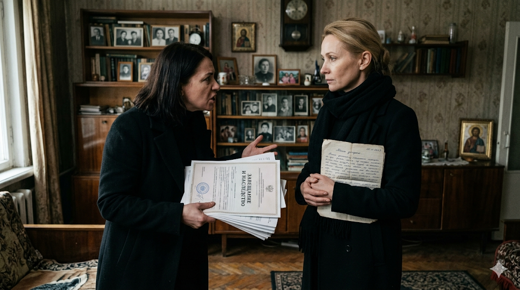 — Это завещание отца, — объявила Вера торжественно. — Составлено два года назад, в присутствии нотариуса и свидетелей. Полностью законное.