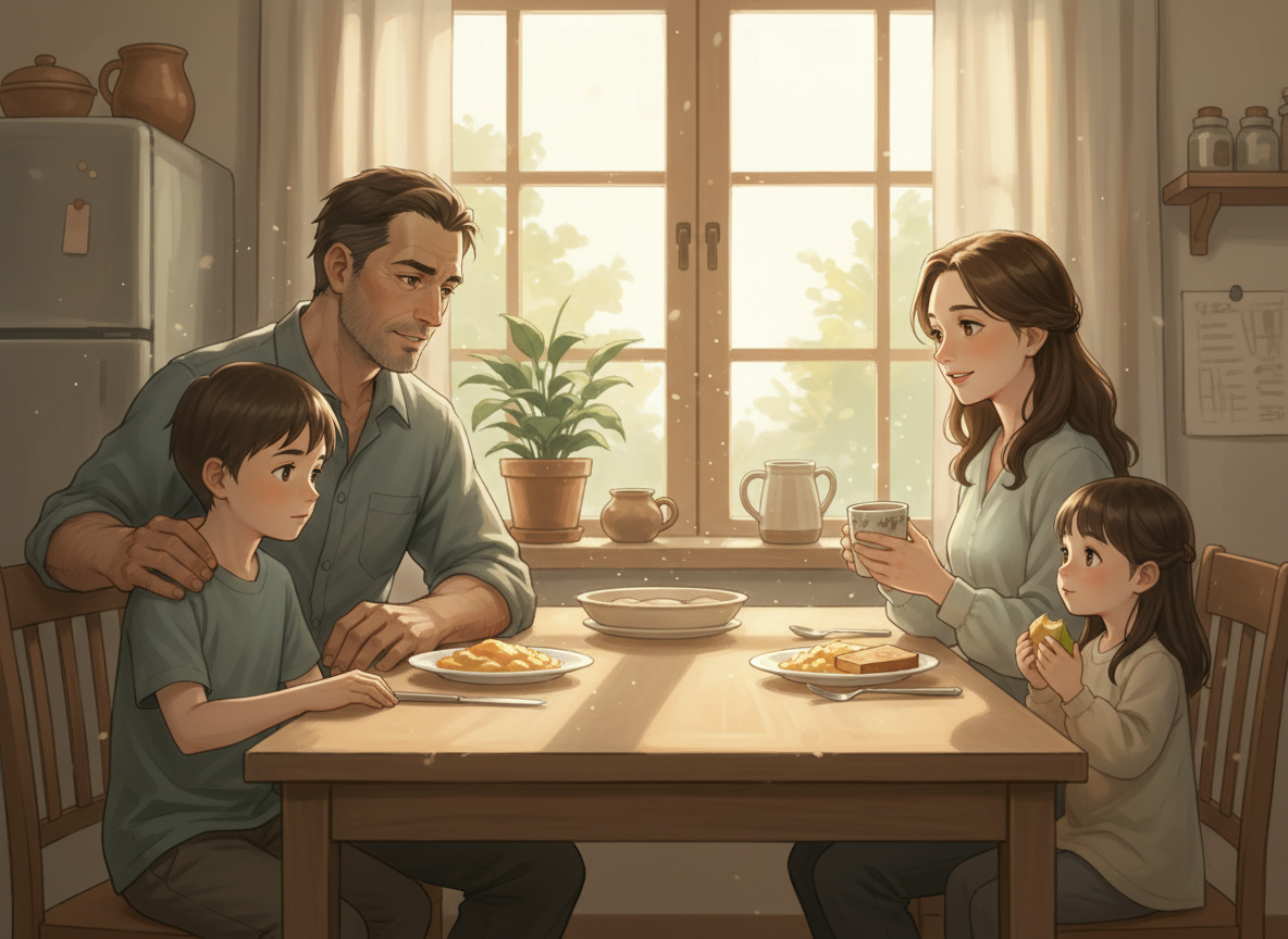 Прошло 4 года. Семья живёт обычной жизнью - школа, работа, выходные вместе. Конфликты есть, как у всех. Но они справляются.