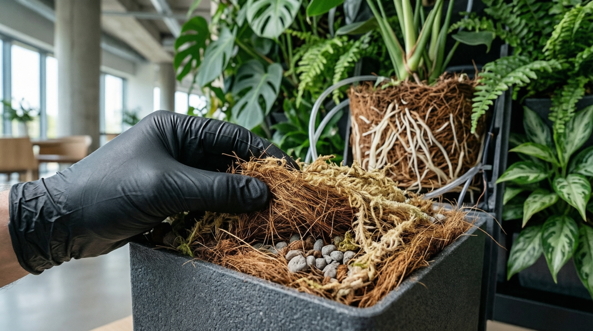 Вы заходите в офис или гостиную, видите сочную зелень и уже открываете банковское приложение, чтобы перевести остаток суммы. Стоп. В 2026 году профессиональное вертикальное озеленение в России стоит от 18 000 до 45 000 рублей за «квадрат». Но 80% этой стоимости — не растения, а инженерная «начинка». Если она собрана на коленке, через две недели ваши инвестиции начнут пахнуть болотом. Пока менеджер разливается соловьем о «кусочке джунглей», проведите эти пять тестов. Они займут всего 5 минут, но спасут ваш бюджет и нервную систему. Первым делом лезем вглубь модуля и проверяем субстрат. · Провокация: Если вы нащупали обычный черный торф — поздравляю, вы купили инкубатор для мошек. Торф в закрытых системах закисает за месяц. · Как должно быть: В профессиональной стене используется безземельный субстрат: кокосовые чипсы, мох сфагнум или грануляты (например, серамис). · Зачем: Это ваша страховка от гнили корней и запаха сероводорода в гостиной. Попробуйте просунуть руку между задней стенкой