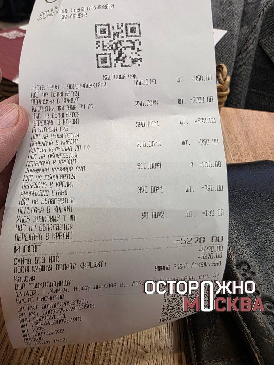 Евгений прилетел в терминал D и сразу решил перекусить в «Шоколаднице». Заказал пасту с морепродуктами и согласился на предложение официанта добавить больше креветок. Но получив счет, удивился — стоимость «добавки» превышает цену основного блюда более чем в два раза: паста — 850 руб., жареные креветки — 2000 руб. Мужчина возмутился, что его не предупредили о столь дорогой закуске и официант полностью признал вину. Но дело это не спасло — платить все равно пришлось. Все новости в MAX.