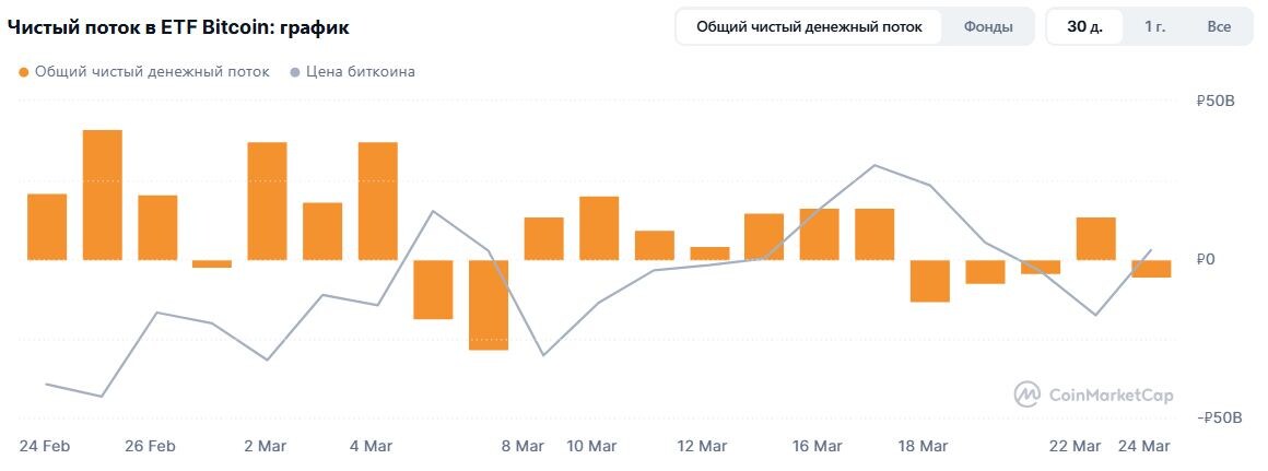 Еще неделю назад мы писали, что текущее движение больше похоже на неуверенный отскок. Сейчас картина стала интереснее — но точно не проще. Цена держится в районе ~$70–73K и, по сути, зажата в диапазоне. Снижение от пиков уже доходило до ~50%, сейчас около 40% — это всё ещё укладывается в классическую модель циклов. Но есть важный момент: сам рынок меняется. Раньше всё было проще — цикл, халвинг, толпа, рост. Сейчас всё больше решают институционалы. Это видно даже по потокам денег: после серии уверенных притоков в ETF пошла «рваная» динамика — сегодня заходят, завтра фиксируются. Это не паника и не эйфория. Это аккуратная работа крупных игроков. 🇷🇺И параллельно с этим усиливается ещё один тренд — движение к регулированию, в том числе в России. В России фактически готовят полноценную легализацию рынка цифровых активов. Не запрет, как многие боялись, а именно контроль и структурирование. Планируется запуск лицензированных бирж, обменников, депозитариев — и работать можно будет только че