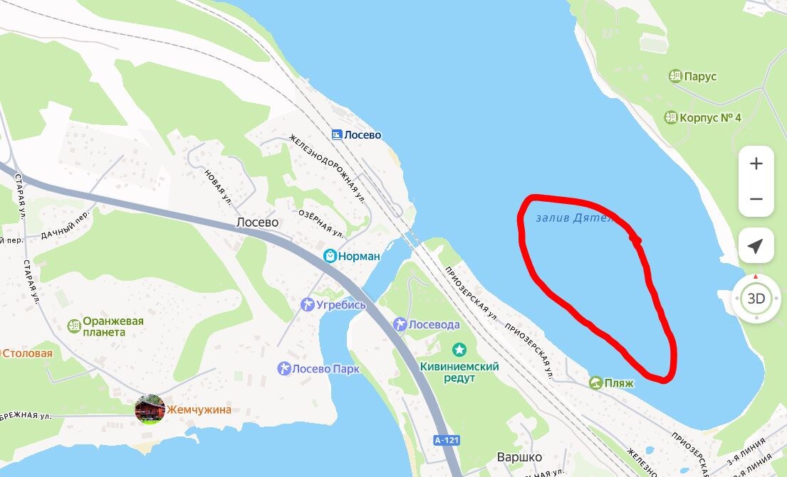 Но все это лето, а что же зимой, спросите вы? Вот и я задался целью проверить что же происходит в Лосево зимой. План был такой, найти пару соратников, благо недостатка в надежных товарищах не было, а затем приехать и искать лед. Понимание, что льда на стремнине не будет конечно было, и по плану мы должны были после приезда вернуться обратно, через ж/д мост на правый берег протоки, и выйти через загородные дома на залив, находящийся в стороне от течения. Наличие рядом свободной ото льда, а значит обогащенной кислородом воды позволяло надеяться на куш.