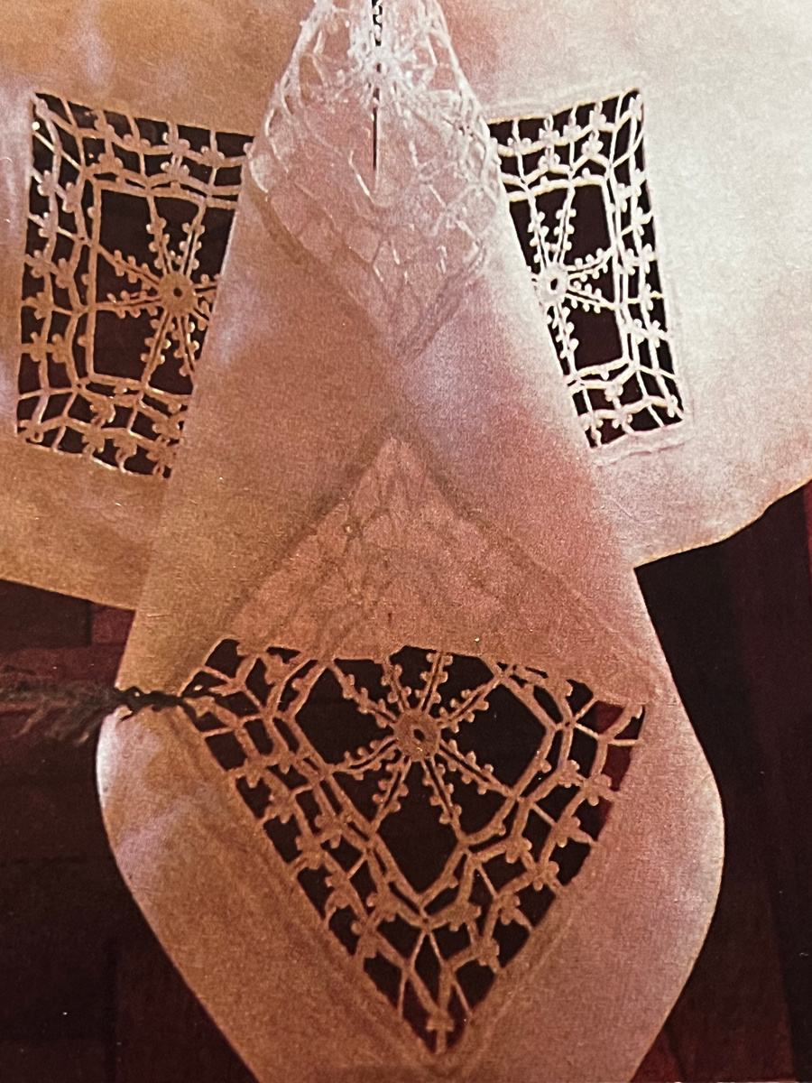 У меня мама тоже по-молодости была рукодельницей, и я до сих пор помню выбитые узорами тканевые подзоры внизу на кроватях и свой детский пододеяльник с красивой цветочной серединкой в стиле "ришелье".