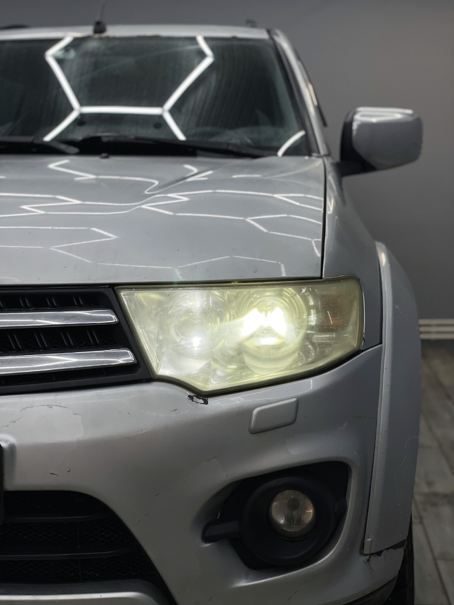 К нам заехал рамный трудяга Pajero Sport. Владелец часто катается по неосвещенным участкам, поэтому надо было сделать так, чтобы дорогу было видно широко, далеко и безопасно. Один из принципов нашей команды — мы за честность. Наша задача не продать лучшее, а продать оптимальное конкретно под человека и его способ эксплуатации авто. Предельно понятно, что не под каждую задачу нужно ставить самый дорогой премиум свет. Если грамотно подобрать линзы под потребности водителя, можно получить шикарный результат без переплат. Что сделали в этой работе для Паджерика. Внутри команды называем это «полный комплекс». - Установили Bi-LED линзы Carson BAT 1. Это крепкий средний бюджет, потенциала которого в принципе хватает для хорошей видимости на трассе и достаточно плотной заливки дороги. - Чтобы мощность света не терялась, заменили старые уставшие стёкла фар на новые. - Закатали новые стёкла в полиуретановую бронепленку. Сделали один раз — и на годы защитили оптику от камней и пескоструя. Клиент