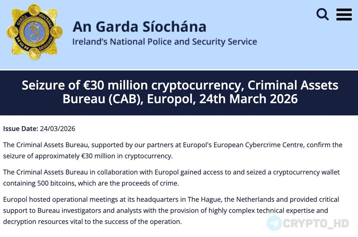 👮♀️ 500 BTC, которые раньше принадлежали Клифтону Коллинзу, конфисковало Бюро криминальных активов Ирландии при поддержке Европола – релиз