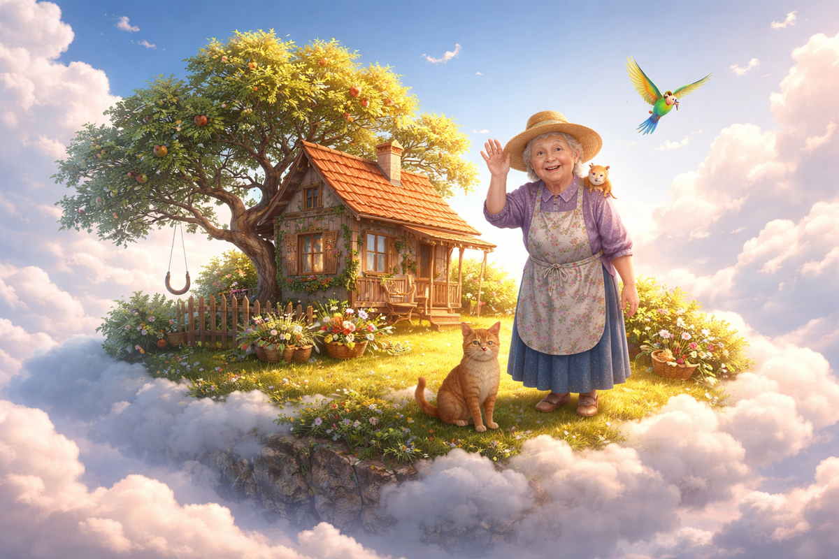 Бабушка встречала всех на крыльце. Платье в горошек, руки, пахнущие пирогами и укропом. Объятия, чай, варенье. Девочка вошла в избу, обошла все углы, заглянула под кровать, открыла пустую клетку.