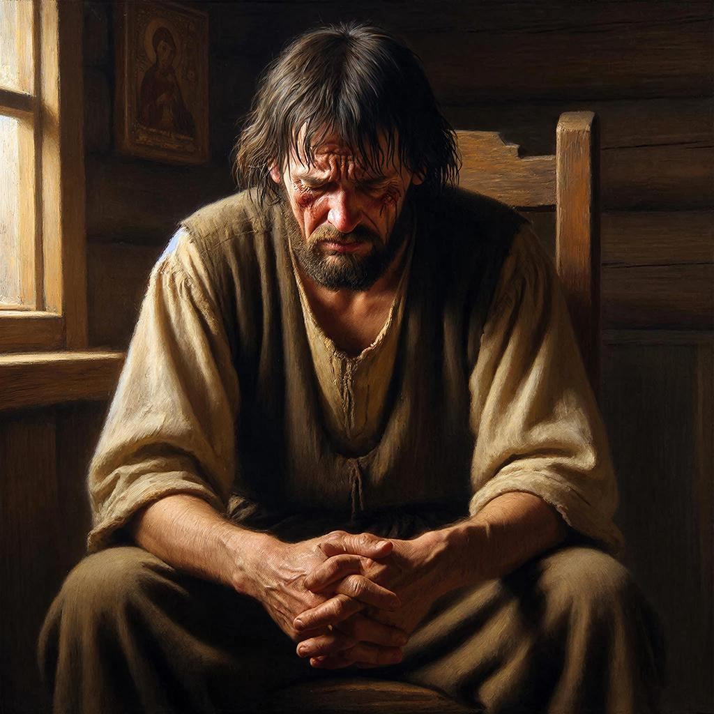 Но годы шли, и с каждым новым злодеянием сердце Кая становилось всё тяжелее. Он видел страх в глазах своих жертв, слышал их мольбы, но заглушал голос совести вином и жестокостью. Однажды, после очередного налёта, когда он остался один у костра в глухом лесу, к нему подошёл странник — седой старец с добрыми глазами. Он не бежал, не молил о пощаде, а просто сел рядом и протянул Каю кусок хлеба.