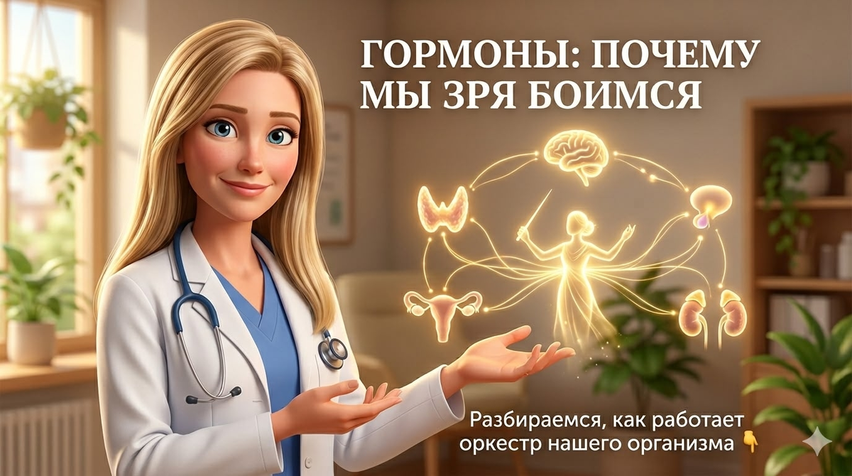 Одни пациентки приходят с просьбой "назначить гормоны, чтобы всё наладилось", другие — с категорическим "только не гормоны, я боюсь". И те, и другие часто опираются на мифы, а не на факты. Сегодня я хочу спокойно, без запугиваний и сложных терминов, рассказать о гормонах. Что это такое, как они работают и почему бояться их — всё равно что бояться собственного организма. Гормоны — это особые вещества, которые контролируют работу клеток и органов. Их вырабатывают железы внутренней секреции или специальные клетки в тканях. Попадая в кровоток, они действуют на клетки-мишени — иногда далеко от места своего образования, а иногда прямо "на месте". Удивительный факт: гормонов в организме очень мало, но они сохраняют свою активность долгое время и способны запускать мощные процессы. Их три главные задачи: 1. Поддерживать постоянство внутренней среды (гомеостаз) 2. Участвовать в обмене веществ 3. Регулировать рост и развитие организма И вся эта сложная система находится под контролем центральной