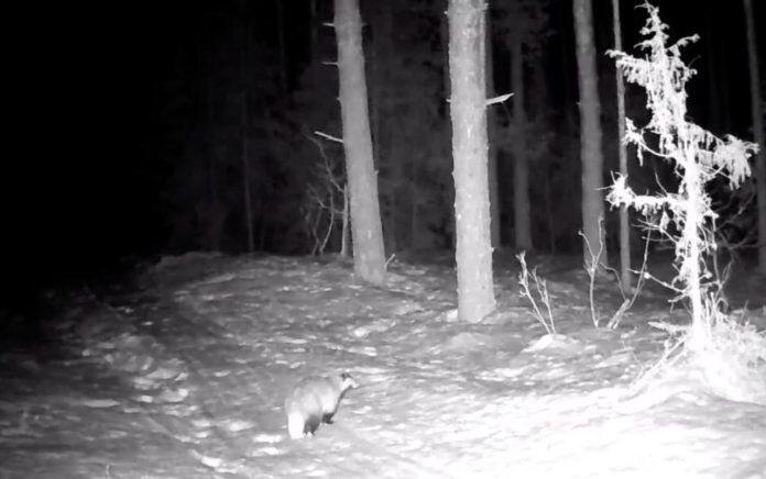 Фотоловушка, установленная в Национальном парке Марий Чодра, запечатлела енотовидную собаку, пробегающую по лесной дороге
