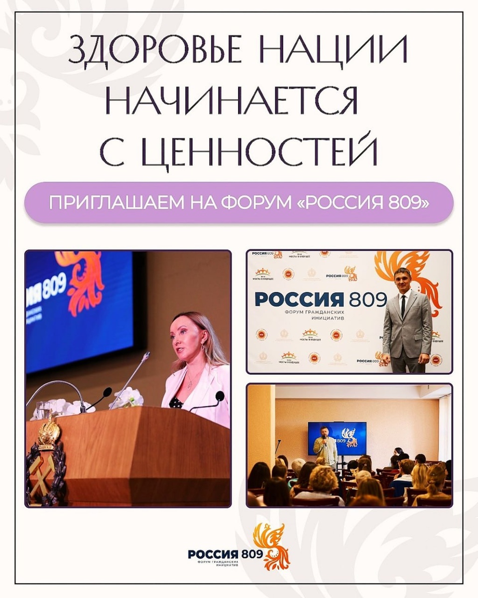 Здоровый образ жизни - это больше, чем питание и спорт Это среда, в которой растут дети. Это ценности семьи, воспитание, образование и ответственность за будущее. Именно этим темам посвящён Форум гражданских инициатив «Россия 809» - пространство для диалога и совместного поиска решений для тех, кому небезразлично здоровье общества, развитие детей и устойчивое будущее страны. На форуме обсуждаются вопросы: - здоровье как часть культуры и образа жизни - роль семьи и среды в воспитании - образование и ценности - объединение людей вокруг созидательных инициатив Форум объединяет родителей, педагогов, общественных деятелей, предпринимателей и всех, кто смотрит на здоровье шире, чем просто привычки. Приглашаем принять участие в форуме. Подробности и регистрация - по ссылке ниже 👇 forum809.ru #указ809 #Россия #закон #страна #развитие