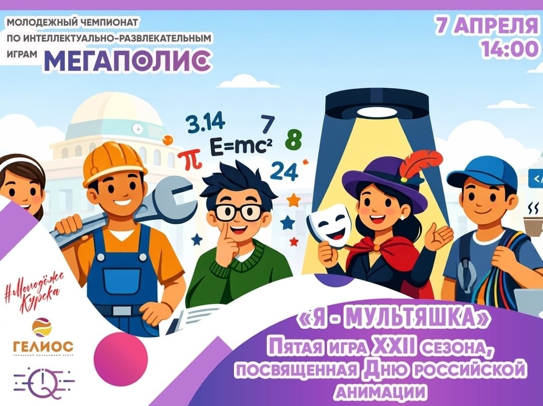 ! Состоится Пятая игра чемпионата города Курска по интеллектуально-развлекательным играм «Мегаполис» - «Я - мультяшка». В этот раз наша игра будет посвящена Дню российской анимации! 🧸🎈 Участников как обычно будет ждать два увлекательных этапа: ✨ 1 этап - Домашнее задание: «Мульт-дефиле». Командам предстоит перевоплотиться в любимых героев! 🎭 Задача: подготовить качественный косплей на персонажей российских мультфильмов (от советской классики до современных хитов) и представить их в формате модельного показа на сцене. 🧠 2 этап - Интеллектуальный квиз Проверим, насколько хорошо вы знаете мир анимации 🗓 Когда? —7 апреля в 14:00; 📍 Где? —Городской молодежный центр «Гелиос» (ул. 50 лет Октября, 102) 🖇 КГУ в MAX