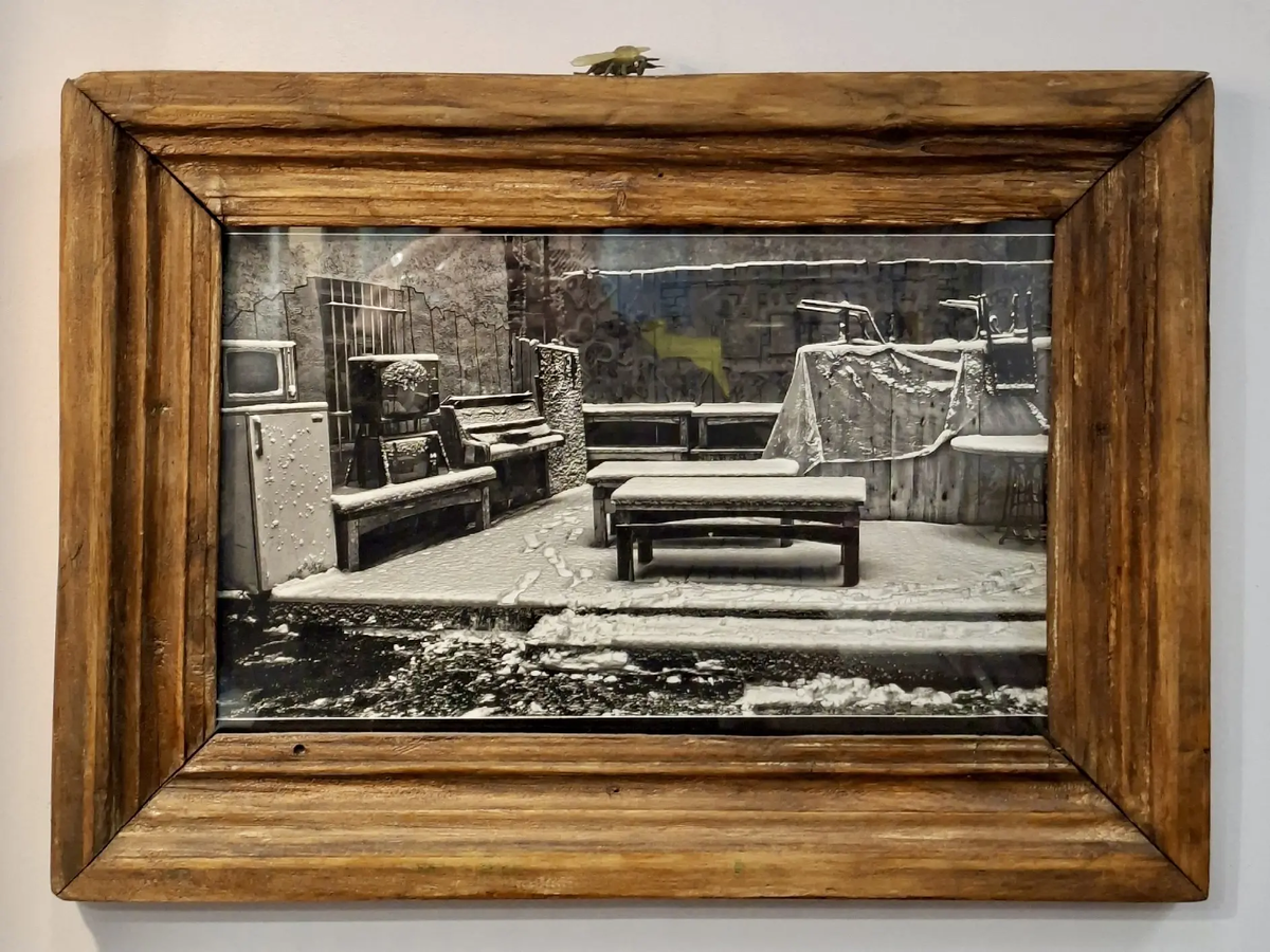 В музее «Кладовка. Галерея историй» есть экспонат, мимо которого невозможно пройти просто так. Это чёрно-белый снимок старого двора, заключённый в самодельную деревянную раму. На снимке — застывший во времени двор. Каждый предмет будто оживает: почти слышишь скрип скамеек, шелест покрывала. Напоминание о важности мелочей: потрескавшаяся краска, шероховатость дерева, выцветшие оттенки. Но главная «изюминка» ждёт самого внимательного зрителя. На раме иронично восседает игрушечная жирная муха. Этот хулиганский штрих — как подмигивание из прошлого. Она подшучивает над излишней серьёзностью «старинных» вещей и напоминает: история — это не только ностальгия, но и живой юмор. Заглядывайте в «Кладовку», чтобы найти свои смыслы в мелочах 😉