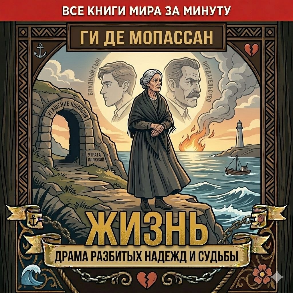 В С Е К Н И Г И М И Р А З А М И Н У Т У Ги де Мопассан — «Жизнь» Суть в одной фразе: История постепенного угасания надежд и утраты иллюзий чистой душой, которая столкнулась с жестокостью, предательством и обыденностью реального мира. Мир и герои: Франция XIX века, Нормандия. Главная героиня — Жанна, юная, восторженная девушка из дворянской семьи, которая выходит из стен монастырского пансиона с мечтами о возвышенной любви и безоблачном счастье. Сюжетный драйв: Брак: Жанна выходит замуж за красавца Жюльена. Однако медовый месяц быстро сменяется разочарованием: муж оказывается скупым, грубым и мелочным человеком. Предательство: Жанна узнает, что Жюльен изменяет ей с их служанкой, а позже — с женой соседа. Её идеальный мир рушится. Смерть Жюльена от рук обманутого соседа приносит не облегчение, а лишь пустоту. Материнство: Жанна вкладывает всю свою нерастраченную любовь в сына Поля. Но сын вырастает эгоистом и мотом, который разоряет мать и бросает её ради случайных связей. Фи