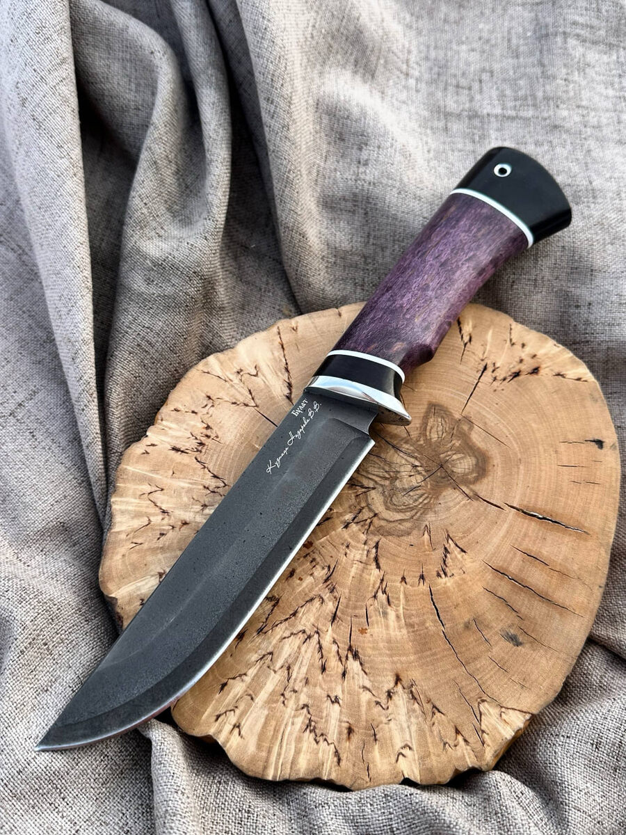 ! ✓ Уникальная сталь: клинок из тигельного булата с твёрдостью 64–65 HRC — это сочетание высочайшей прочности и превосходной режущей способности. ✓ Усиленная конструкция: спуски от середины клинка делают нож более прочным, идеально подходит для сложных задач на охоте, в туризме и повседневном быту. ✓ Ручка: стабилизированная карельская берёза в эффектном фиолетовом цвете и чёрный граб — не только красиво, но и удобно в руке, даже в перчатках. ✓ Кожаные ножны — в комплекте. 🔥 Специальная цена — 10.890 ₽ (вместо 18.150 ₽)! 🔹 Для заказа: пишите в Telegram [@Nazarklinokbot](https://t.me/Nazarklinokbot) или WhatsApp/Viber: [+79101343831](https://wa.me/79101343831) 📲 Присоединяйтесь к нашему каналу в MAX