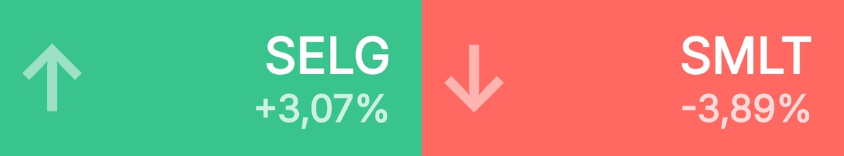 : Селигдар • 53,04 ₽ • 3,07% Группа Поз • 1 115 ₽ • 2,12% ЮМГ • 891 ₽ • 1,99% Газпром • 137 ₽ • 1,78% Юнипро • 1,50 ₽ • 1,70% Озон • 4 518 ₽ • 1,21% Эн+ • 442 ₽ • 1,03% ТГК-1 • 0,01 ₽ • 0,77% Фикс Прайс • 0,60 ₽ • 0,74% Яндекс • 4 333 ₽ • 0,74% 🔻 Топ-10 лидеров падения среди крупнейших акций: ГК Самолет • 702 ₽ • -3,89% М.Видео • 65,10 ₽ • -3,77% Группа ЛСР • 679 ₽ • -2,61% Мечел прив • 65,20 ₽ • -2,54% ВИ.ру • 75,23 ₽ • -2,22% РуссНефть • 130 ₽ • -1,96% Ростелеком • 57,07 ₽ • -1,94% Алроса • 36,53 ₽ • -1,83% ЭЛ5-Энерго • 0,49 ₽ • -1,20% Русал • 39,96 ₽ • -1,13%