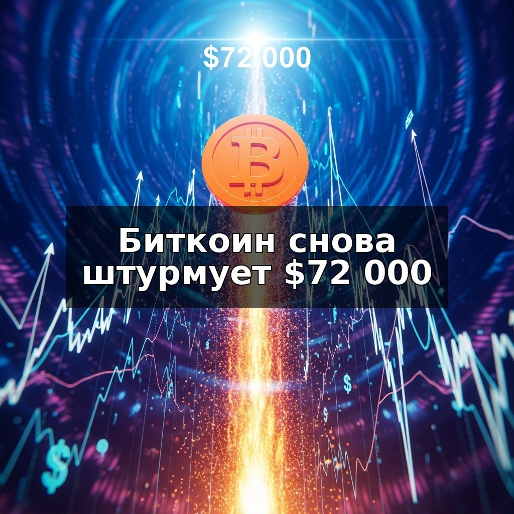 Событие: Курс биткоина вновь приблизился к психологической отметке в $72 000, демонстрируя рост на фоне общего подъема фондового рынка