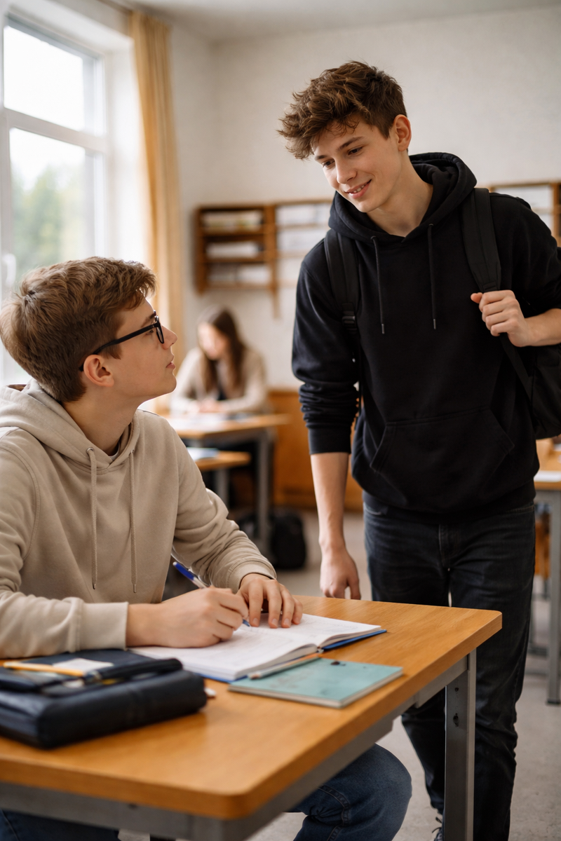 На переменах Артём чаще оставался один. Иногда делал домашку или просто листал учебник, делая вид, что занят. Хотя на самом деле просто не знал, куда себя деть.