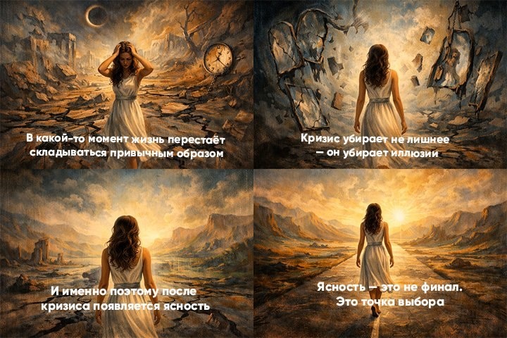 — это не усталость. И даже не потеря. А… ясность. Хотя внутри всё сначала выглядит наоборот: хаос, перегруз, ощущение, что ничего не складывается. На работе — особенно. 📂 задач больше, чем смысла ⏳ времени меньше, чем ожиданий 🧠 в голове — шум вместо решений И в какой-то момент кажется, что вы стали хуже справляться. Но правда в другом. Кризис не делает нас слабее — он убирает лишнее. Лишние ожидания. Лишние сценарии. Лишние «так надо». И когда всё это начинает рушиться, впервые становится видно: — что действительно важно — что не работает — где вы действуете по привычке, а не по смыслу И именно поэтому после кризиса появляется то, что невозможно получить в спокойные периоды — чистое понимание.✍ Вопрос только в одном: заметите ли вы его… или снова закроете привычным шумом😘 @mariyabilat