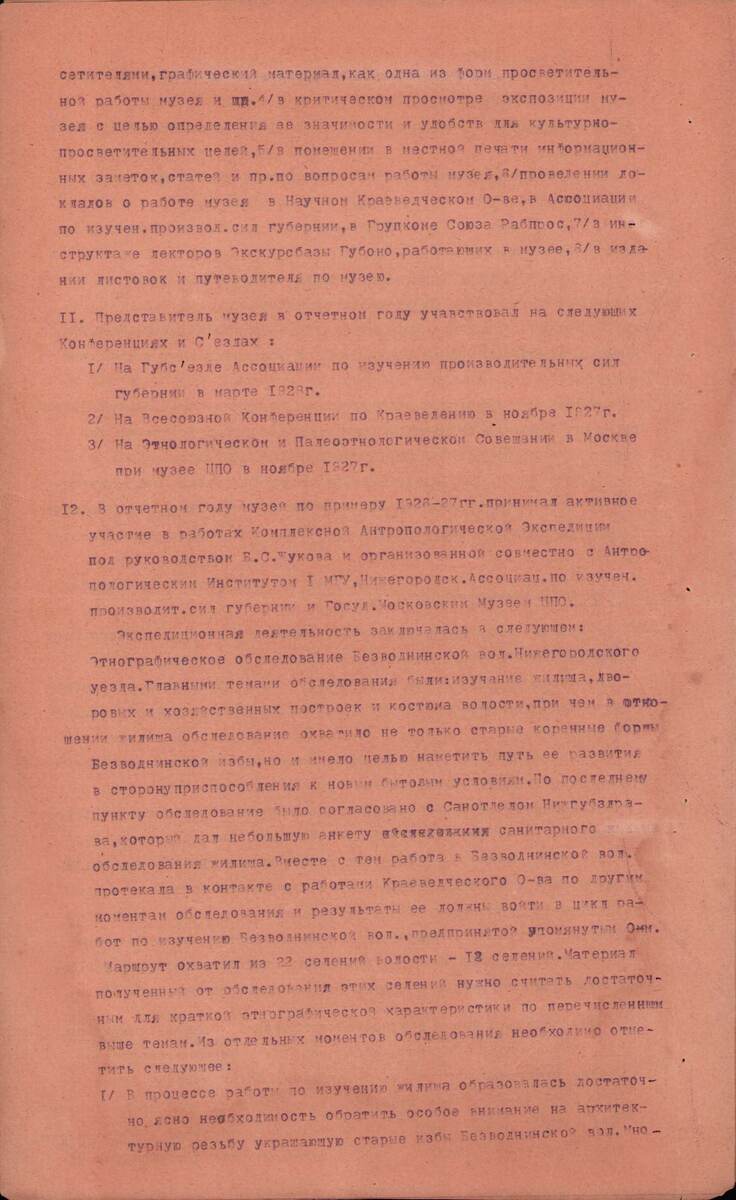 В архиве Нижегородского музея-заповедника хранится отчет о его работе за период с 1 октября 1927 г. по 1 октября 1928 г. Из него видно, что в составе музея существовал отдел палеоэтнологии и этнографии, который возглавлял Михаил Петрович Званцев (1902–1977). В будущем это известный специалист по народному искусству, автор книг по этой теме. Но в 1928 году он еще молодой сотрудник, недавно окончивший краткосрочные курсы музейных работников Наркомпроса в Москве и присоединившийся к работе Комплексной Антропологической экспедиции по изучению производительных сил в Нижегородской губернии. Экспедиция была организована сотрудником Института антропологии 1-го МГУ Борисом Сергеевичем Жуковым, нашим земляком, сыном издателя газеты «Волгарь». В отечете музея указывается, что в 1928 году обследовались селения Безводнинской волости, и особое внимание было обращено на богатую резьбу, украшавшую крестьянские избы. 👉 М.П. Званцев сделал фотографии в экспедиции, благодаря чему мы можем сегодня видет