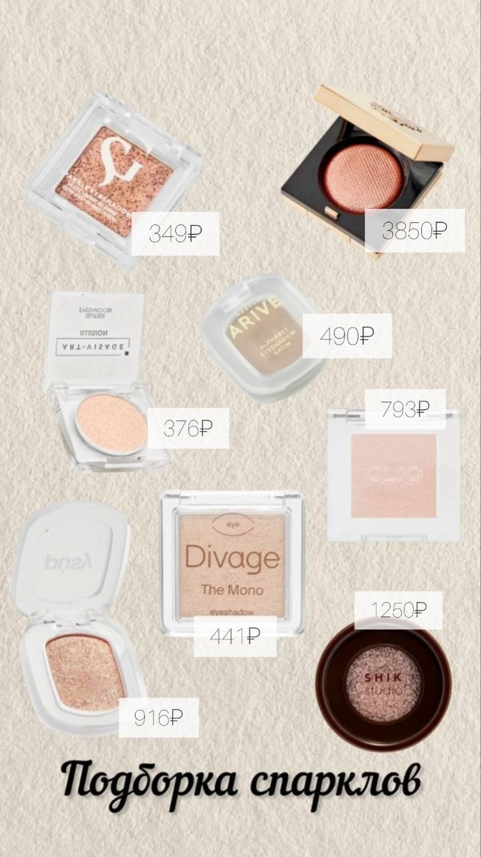 💎 🫲DIVAGE the mono 🫲ARIVE MAKEUP alphabet eyeshadow 🫲BELOR DESIGN show glow 🫲PUSY sparkle eyeshadow 🫲SHIKSTUDIO avior 🫲CLIO pro single shadow 🫲BOBBI BROWN luxe eye shadow 🫲ART-VISAGE illusion 🌸Делитесь, а какие любимые спарклы у вас?