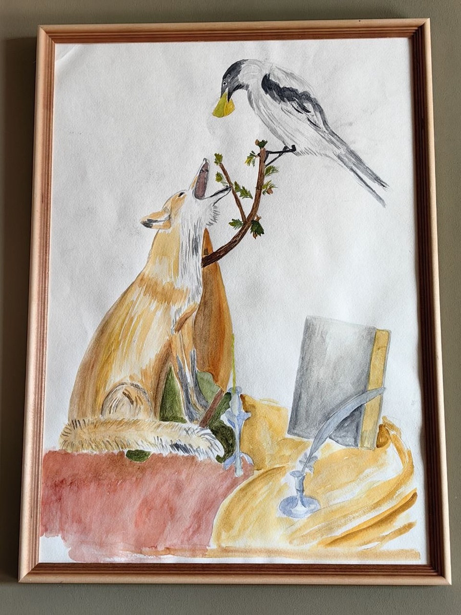 Иллюстрация, к басне Крылова "Ворона и лиса", выполненная мною акварелью.
