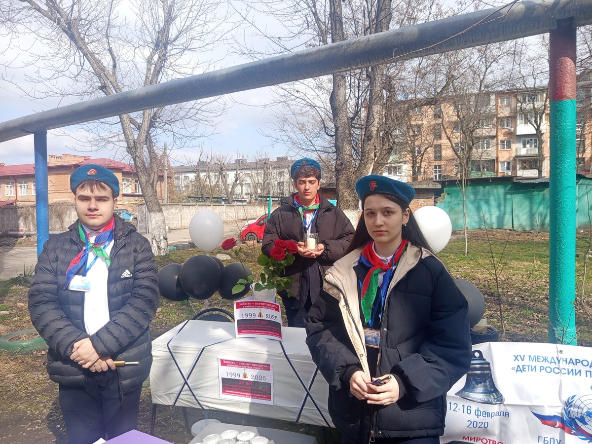 19 марта 2026г., в День памяти жертв теракта на Центральном рынке Владикавказа в 1999 году, в сквере офиса отдела патриотического воспитания Центра «Творчество» г.Владикавказа прошёл траурный митинг. Эта акция проводится уже 27 лет подряд под руководством Председателя Движения юных миротворцев РСО–Алания Виктора Беляева и актива Совета при поддержке МОФ «Российский Фонд Мира». Представители ветеранов и молодёжи собрались, чтобы почтить память невинно погибших и выразить единство перед лицом террора.