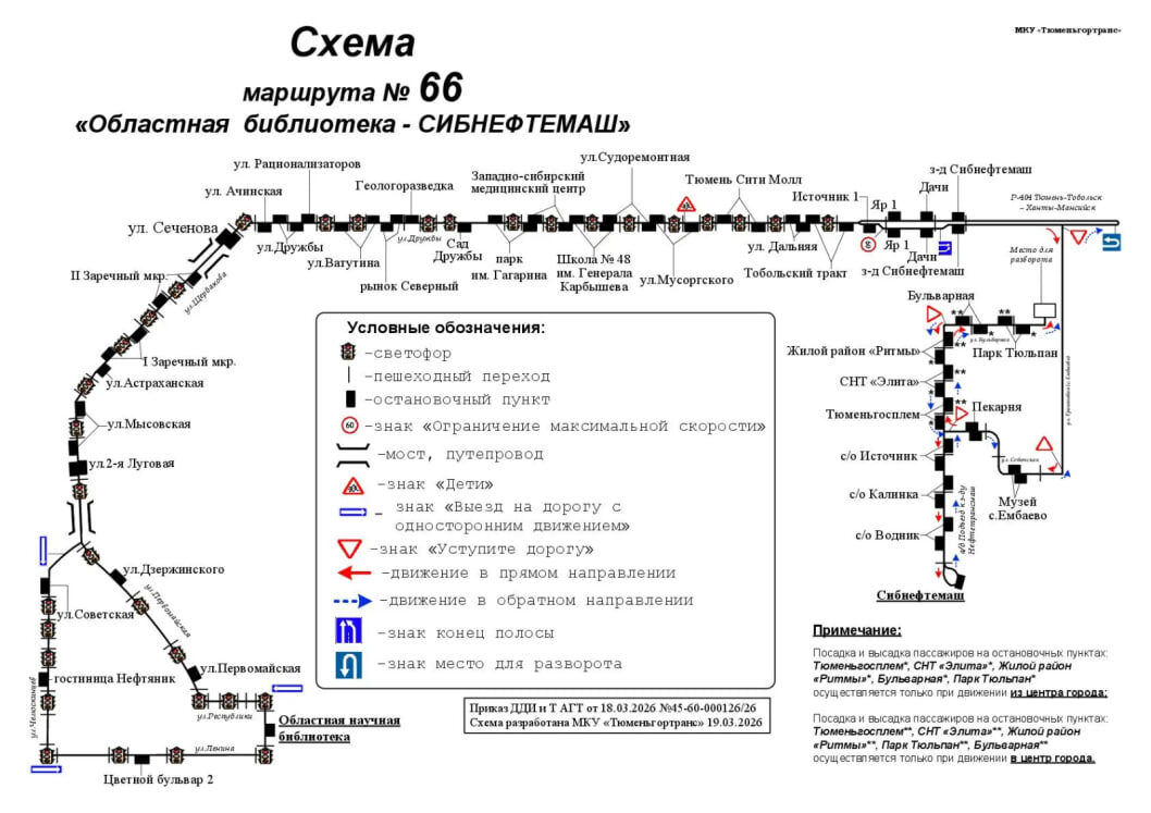 Изменения схемы движения вступят 28 марта. Автобус будет следовать по улице Бульварной в обоих направлениях. ➡️ Теперь на маршруте появятся остановки «Тюменьгосплем», «СНТ "Элита"», «Жилой район "Ритмы"», «Бульварная» и «Парк Тюльпан» в прямом и обратном направлениях.
