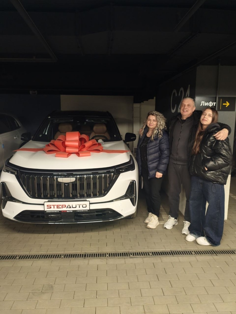 🍾 Geely Atlas из наличия продан ✔️ Рестайлинг Год выпуска: 2025 Максимальная комплектация: Splendor Модификация: 1.5л, 174 ЛС - Проекционный дисплей - Массаж, подогрев, вентиляция переднего ряда - Контурная подсветка - Панорамная крыша с люком - 2 зонный климат-контроль - Адаптивный круиз и многое другое Поздравляем Татьяну и ее семью с покупкой нового автмообиля, благодарим за выбор нашей компании, ровных Вам и лёгких дорог 🤝 Посмотреть весь список автомобилей в наличии в Москве, узнать текущие акции и специальные предложения можно на нашем сайте: https://stepautomsk.ru/catalog_nalichie 🔜ПОДОБРАТЬ АВТО Автомобили в наличии: +7(916)555-14-15 Автомобили под заказ: +7(916)505-00-15 📱 Наш сайт StepAuto 📱YouTube | 📺RuTube | 📱VK 📱 MAX 😎 Авито #отзывы_наши_клиенты