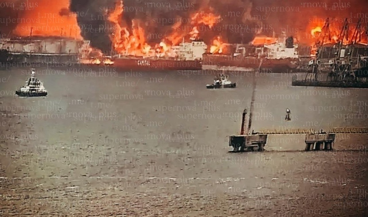 Кадры масштабного пожара в порту Усть-Луга Ленинградкой области после ударов дронов-камикадзе ВСУ, опубликованные украинскими каналами
