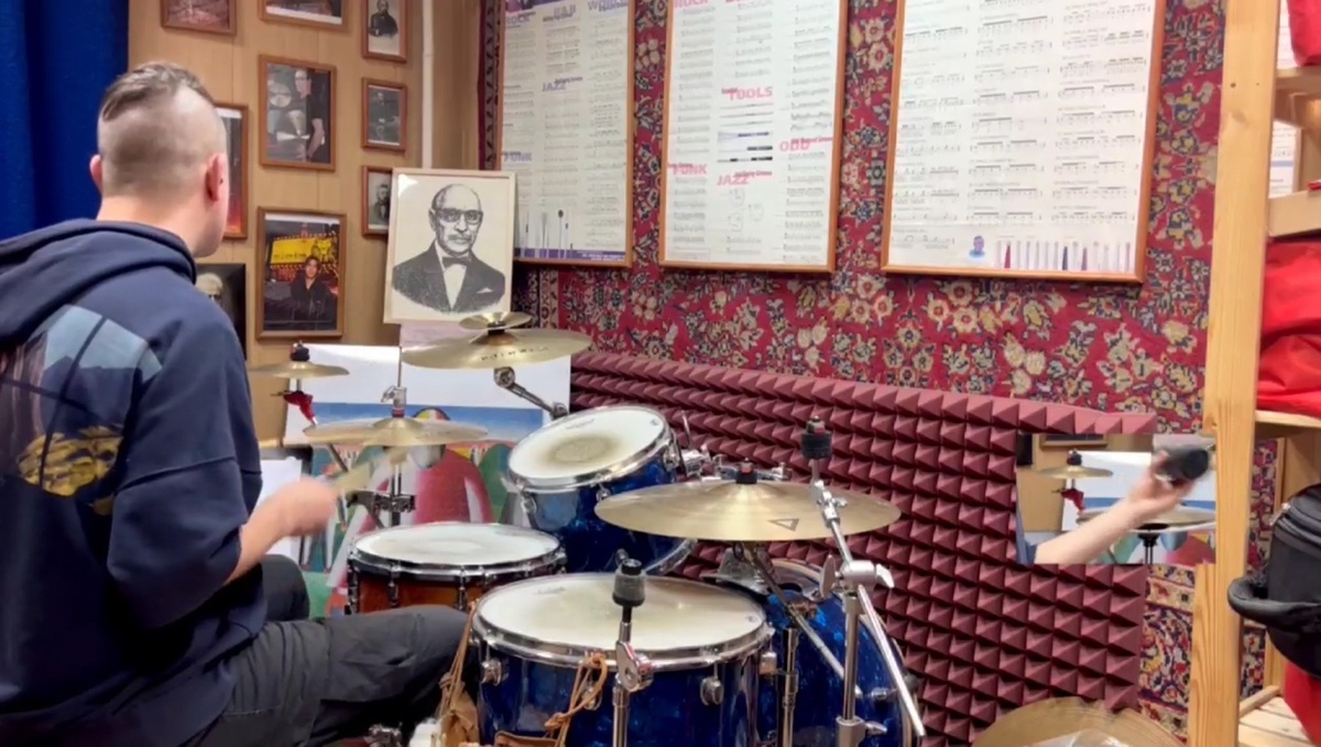Сергей Ермаков о работе над синглом: Грубоватый,нарочито грязный рок-н-ролл. Перед собой я поставил задачу сыграть что то в стиле всем известных 2х тактовых грувов Джеймса Брауна ,а также довольно распространенных акцентов которые я называю для удобства 332 (по группам восьмых нот),но с максимальным количеством вариаций и переходом в прямой бит. Также стояла задача сделать барабанное вступление,которая я решил сделать странным))со смещением доли и подкавырками. Как раз перед самой записью я прикупил себе второй сплэш и мне показалось забавным выстроить лейтмотивом в почти каждом брейке в композиции звучание 2х сплэшей. В провисе же,где прочитает темп в голове сидело что-то в духе Тандеркэт,вайбовое и не напряженое. Вот такой анализ партии получился))делать подобные разборы? Или же лучше чтобы слушатель сам делал выводы? Смотреть видео с записи