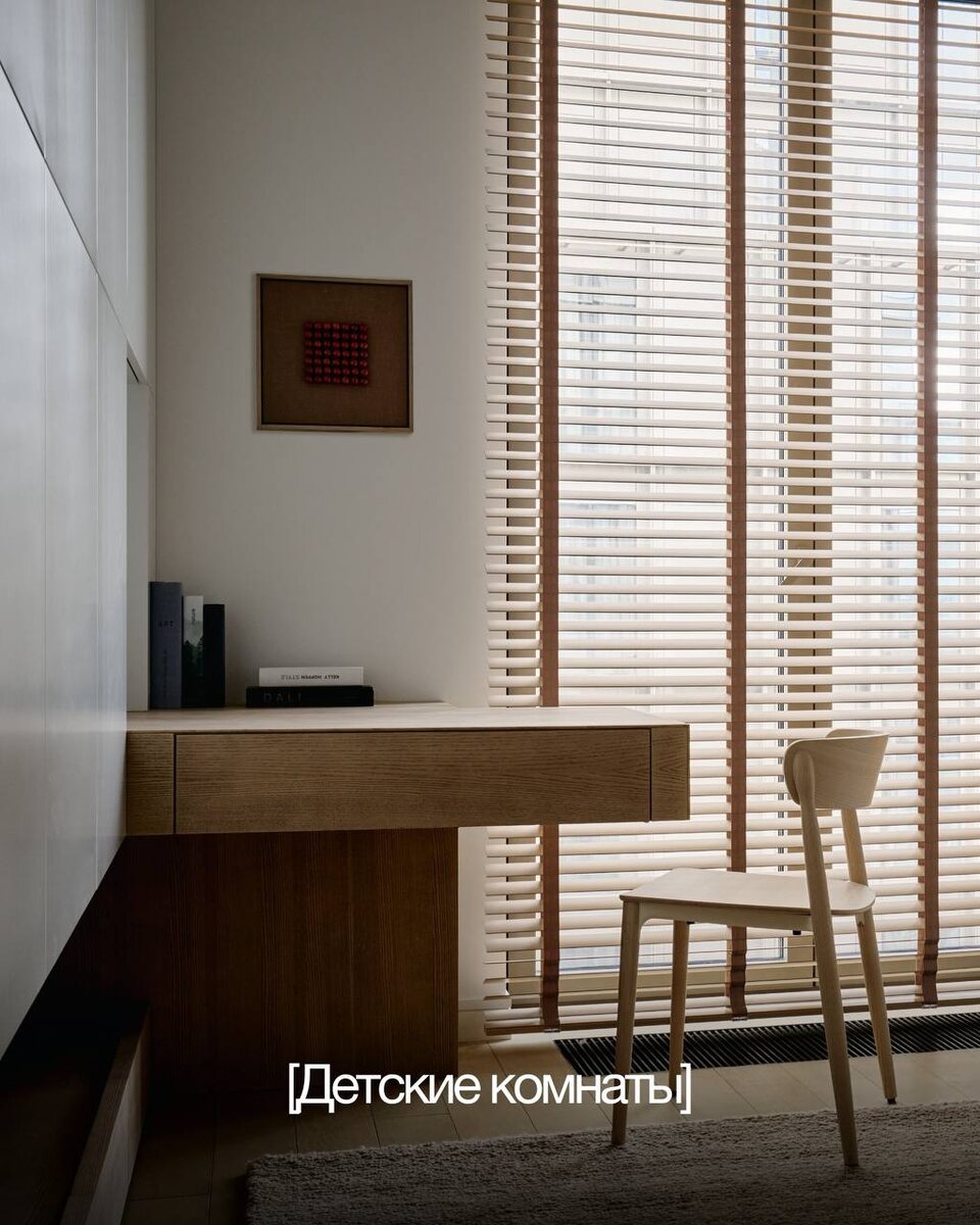 , которое быстро меняется вместе с ребенком.🦕🧸 Поэтому здесь особенно важна мебель, которая работает не только как предмет, но и как система. Кроме того, при реализации любой детской мы всегда делаем дополнительный акцент на безопасности. В этих проектах мы решали разные задачи: 🟡где-то нужно было встроить рабочую зону и хранение в единую композицию, 🟡где-то собрать второй уровень для сна, 🟡где-то сохранить ощущение легкости при большом количестве мебели. Во всех случаях основой стала работа с натуральным деревом и шпоном. Теплая фактура помогает уравновесить архитектуру встроенных конструкций и делает пространство более живым. ✅Отдельное внимание всегда уделяем деталям: лестницам, ограждениям, рабочим столам, нишам хранения. Именно они формируют ощущение надежности и удобства в ежедневном использовании.