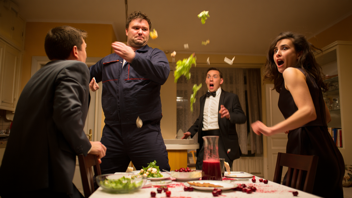 Она стояла в дверях спальни, скрестив руки на груди. В гостиной все еще царил хаос: разбитые тарелки, рассыпанный салат на дорогом ковре, пятна от вишневого сока, который Вадим с размаху плеснул на стену. Ее коллеги, интеллигентные люди из бюро переводов, ушли пятнадцать минут назад. Ушли в полной тишине, поспешно одеваясь в прихожей и стараясь не смотреть ей в глаза.