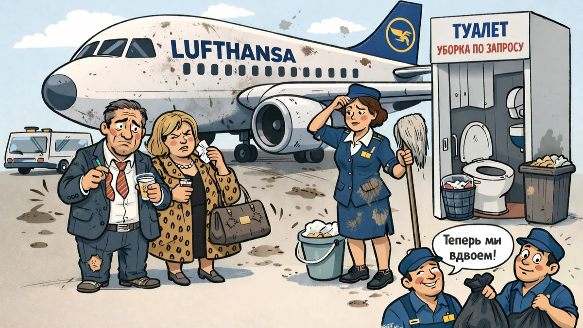 Когда-то Lufthansa была образцом для подражания для всех авиакомпаний мира. С тех славных пор много полётных миль утекло. Spiegel вбивает гвозди соточка в крышку гроба гордости фрицев уже с заголовка статьи: «Компания Lufthansa тестирует какое количество грязи пассажиры готовы терпеть». Так в Германии от заботы о пассажирах перешли к привычному национальному – опытам на людях. Цитирую хронику испытаний грязью по-немецки: «Компания Lufthansa тестирует концепцию упрощенной уборки на европейских рейсах ближнего следования. В частности: туалеты будут убираться только по запросу, а мусор из карманов сидений будет удаляться только «по мере необходимости». Полная уборка между рейсами больше не будет проводиться; вместо этого члены экипажа будут выборочно проверять места, где уборка необходима. На удаленных станциях вместо четырех уборщиков будут задействованы два». Наверное, поездка в немецком хлеву будет дешевле? Как бы не так! В статье сказано, что билеты на этот аттракцион невиданной