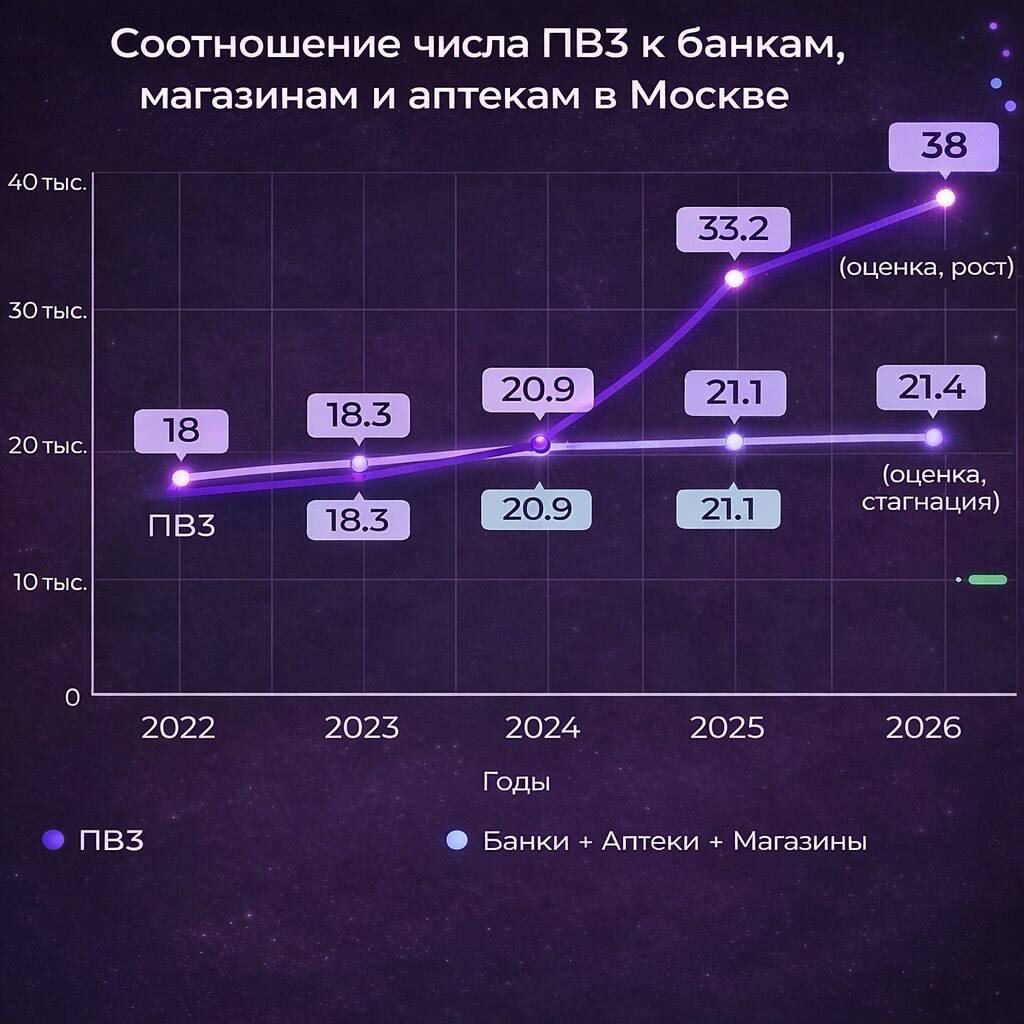 Москва демонстрирует уникальный тренд: пункты выдачи заказов (ПВЗ) стали неотъемлемой частью городской среды, обогнав по распространённости традиционные объекты — аптеки, банки и продуктовые магазины.