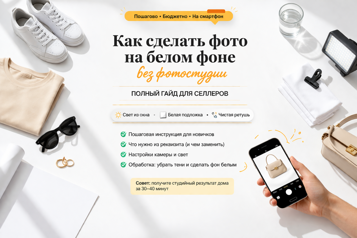 Белый фон на фото товара — это не прихоть маркетплейсов. Это стандарт, который напрямую влияет на то, попадёт ли ваша карточка в топ поиска или потеряется на третьей странице выдачи. Wildberries, Ozon и Яндекс.Маркет прямо прописывают требования к фону в правилах для продавцов. И всё же тысячи селлеров каждый день загружают карточки с кремовым, серым или просто грязным фоном — и потом удивляются низкой конверсии.