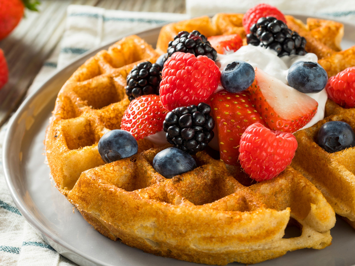Крупные, прямоугольные, с очень глубокими ячейками. Они лёгкие, воздушные и невероятно хрустящие, потому что в тесто добавляют взбитые в крутую пену белки и много сливочного масла. Благодаря глубоким ячейкам бельгийские вафли идеально подходят для «топпингов»: растопленный шоколад, карамель, свежие ягоды или шарик мороженого затекают в углубления, превращая десерт в настоящее гастрономическое событие.