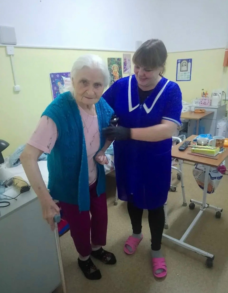 Людмила Дмитриевна 30 лет посвятила школе, привыкла быть среди учеников и коллег. После инсульта жизнь резко изменилась, навалилось одиночество. От него Людмила Дмитриевна спаслась в стационарном отделении Няндомского КЦСО, быстро нашла общий язык с соседками. Дома Людмила Дмитриевна после инсульта не покидала кровати. А тут Марина Леонидовна и Оксана Сергеевна с первых дней начали помогать вставать и ходить. Сначала это были несколько неуверенных шагов по комнате без обуви, так как Людмила Дмитриевна с трудом чувствовала пол. Дальше-больше: привыкла к обуви, стала под руку с помощницей выходить в коридор и преодолевать приличные расстояния. Помощницы могут и волосы в привычную учительскую «гульку» собрать, и на мастер-класс проводить, и канал нужный в телевизоре найти, и книгу почитать, если шрифт мелковат. Больше никакого одиночества. Бывает, Людмила Дмитриевна положит голову на плечо и заплачет: «Девочки мои, спасибо вам, что бы я без вас делала»… Это мал