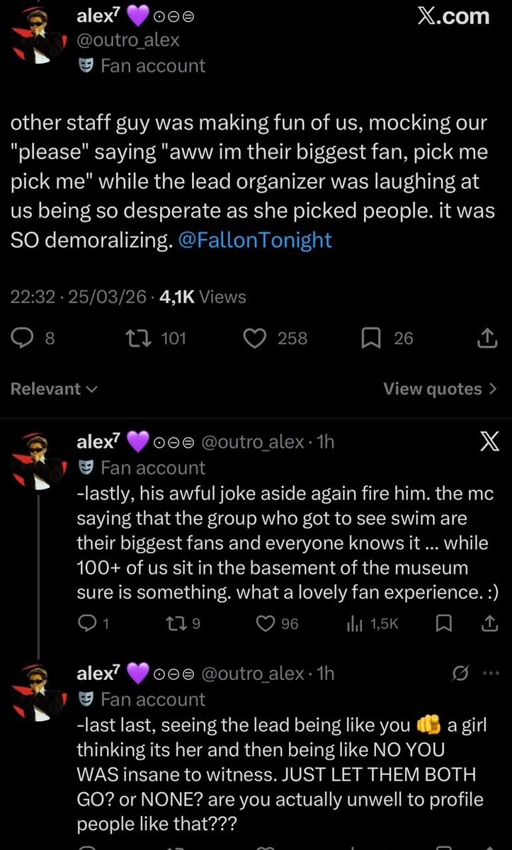 ? BTS подверглись расистской шутке о своей национальности: по словам фанатов, один из сотрудников шоу спросил, какой из участников якобы из Северной Кореи. Многие Арми жаловались, что их отделили от остальных и заставили смотреть выступление на экране в отдельной комнате целых три раза. Группы не меняли, выбрали только несколько человек с синими браслетами, остальные были отделены и не могли увидеть живое выступление. Сотрудники шоу плохо обращались с фанатами, и многие чувствовали себя униженными, невидимыми и неприятными. Арми описывали это как ужасное чувство. А ведь недавно Намджун говорил, что их больше не спрашивают о том, из Северной или Южной Кореи они. @skandalbomb
