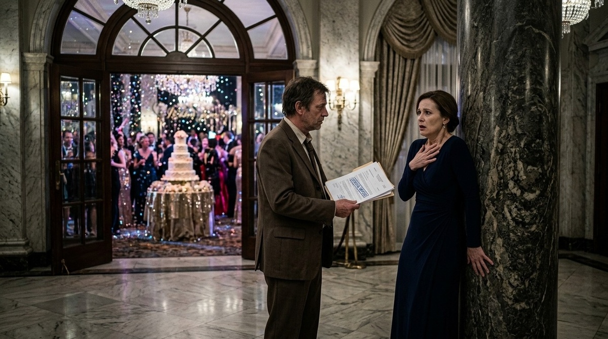 Кристина, стоявшая в своем сияющем платье, вдруг дернулась, словно от пощечины. Она быстро взглянула на мужа, поймала его тяжелый, предупреждающий взгляд и... закрыла лицо ладонями.